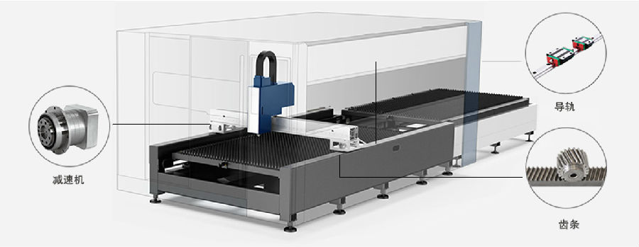 光纖激光切割機配備臺灣yyc齒條,日本新寶法蘭輸出減速機、臺灣上銀導(dǎo)軌。